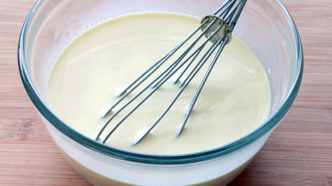 Step4Beat the eggs, half and half and salt in a mixing bowl with a wire whisk until combined.