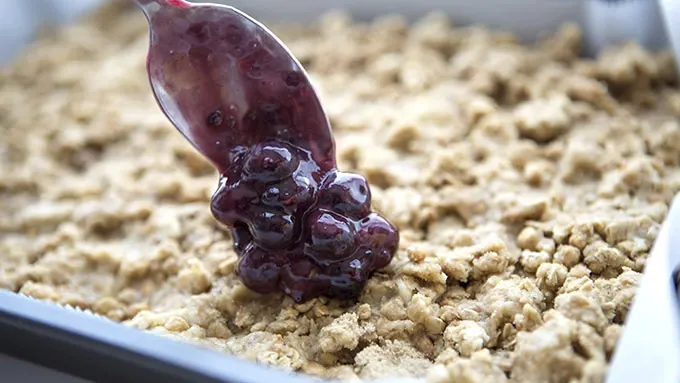 Made with protein-packed granola and organic blackberry jam, these delicious breakfast bars come together quick and look great on a brunch table. A great make-ahead, easy-to-tote breakfast bar.