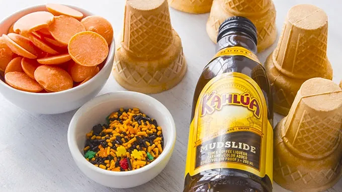 Colorful chocolate-dipped ice cream cones are turned into shot glasses for boozy, creamy espresso in this clever recipe.