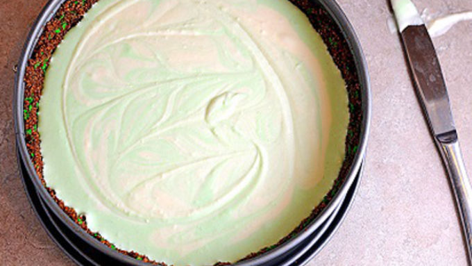 Boozy Shamrock No-Bake Cheesecake