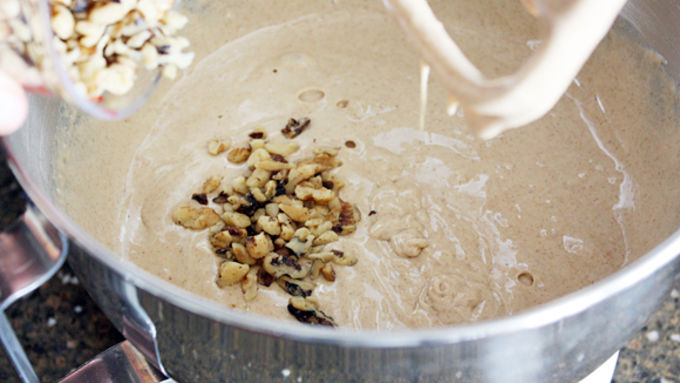Step2In a large bowl or bowl of a stand mixer, beat cake mix, water, oil, bourbon and eggs on low speed 30 seconds, then on medium speed 2 minutes, scraping sides of bowl occasionally. Fold in chopped walnuts, if desired.