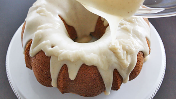 Step6Immediately pour glaze evenly over warm cake. Let glaze set and cake cool before slicing.