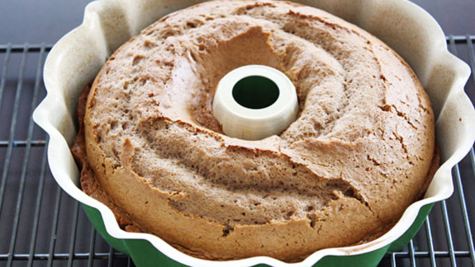 Step3Pour batter into prepared pan and bake until golden brown and a toothpick inserted in the center comes out clean, about 40-45 minutes. Remove cake from oven and cool 10 minutes before removing from pan. Transfer cake to serving plate.