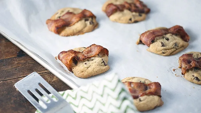 - These bacon-wrapped cookies are sweet, savory and addicting! Do you know how I know when I’m on to something good? Like when I have the real possibility of a winner recipe? It’s when I mention what I’m making to my husband or kids and they get this weirded out look on their face. You’re wrapping cookie dough in bacon and adding bourbon? Gross, mom. Get a life. Aaaaand, then the cookies come out of the oven, the glaze gets drizzled on, and I immediately have to make a second batch because they were practically inhaled by my people. The craziest concoctions tend to be the favorites in my house! That’s it, friends. You’ve made some crazy cookies that are sure to be gobbled up and talked about for the rest of forever.