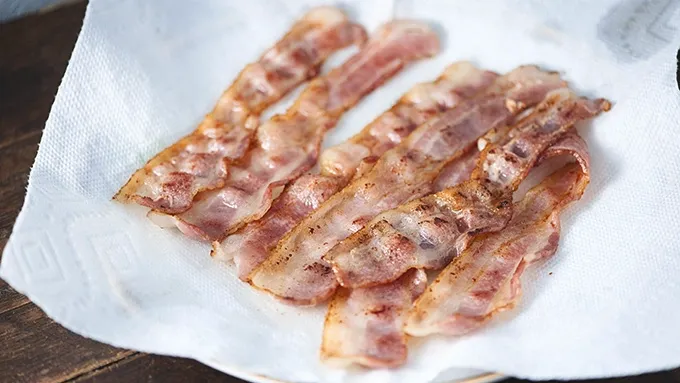 Step2While the oven is heating, fry the bacon 1-2 minutes per side, just until the edges are starting to brown, but the bacon is not yet crisp. Drain on a paper towel-lined plate. Let the bacon cool just enough to be able to handle it easily. If it’s too cool, it won’t be very flexible, but if it's too hot you’ll burn yourself.