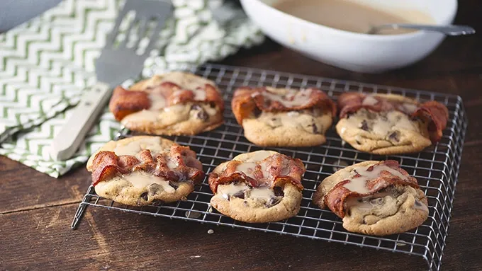 Take your favorite cookie to the next level with crispy bacon and a drizzle of maple bourbon glaze!