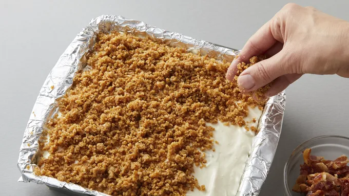 Step5Sprinkle reserved crumbs and remaining bacon over top.