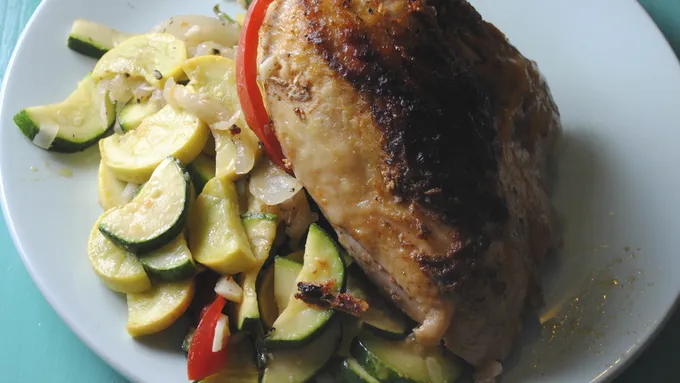 - 4 boneless skinless chicken breasts (1 1/4 lb)