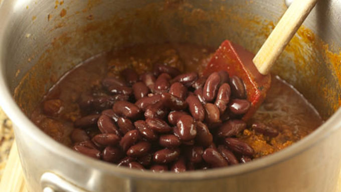 Step6Stir in the beans with their liquid. Heat to boiling over high heat. Once mixture is boiling, reduce heat just enough so mixture bubbles gently. Cook uncovered about 10 minutes, stirring occasionally, until desired thickness.