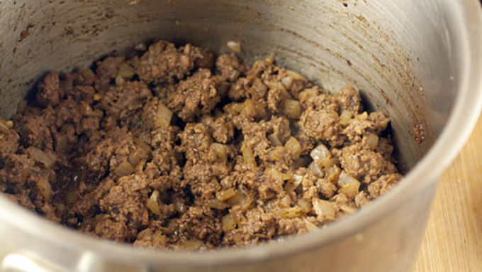 Step2In a 3-quart saucepan, cook the beef, onion and garlic over medium heat 8 to 10 minutes, stirring occasionally, until beef is thoroughly cooked.