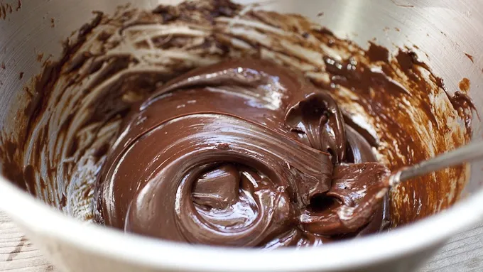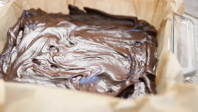 Step3Fold butter into the fudge mixture until it’s an even consistency and scoop mixture into the parchment-lined baking pan. Smooth it out and chill fudge until it’s set, at least 2 hours.