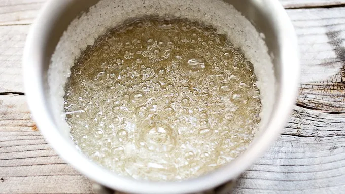 Step4For caramel, add sugar and water to a small pot over medium-low heat. Swirl the mixture together to help dissolve sugar. Don’t stir the mixture at any point.