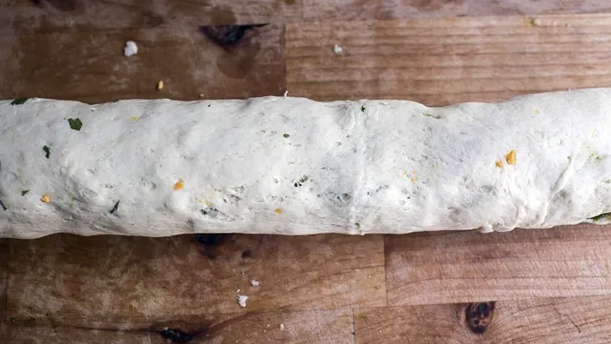 Working with the end closest to you, tightly roll the dough up into a log.