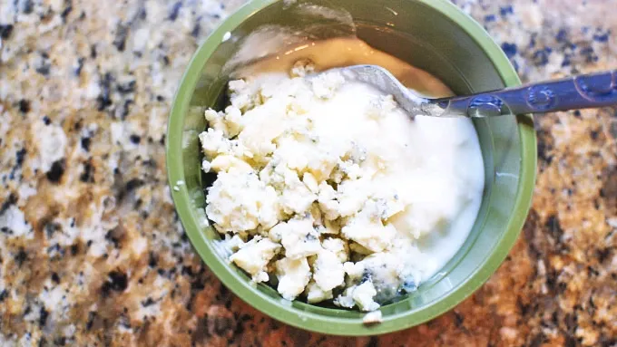 Step1Mix the yogurt with the blue cheese and let it sit a few hours or overnight.