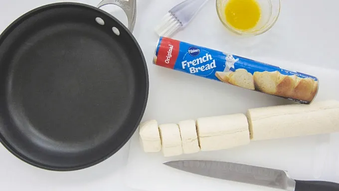 Step1Preheat oven to 375°F. Remove French bread dough from packaging and cut the loaf into 12 equal slices.![]()