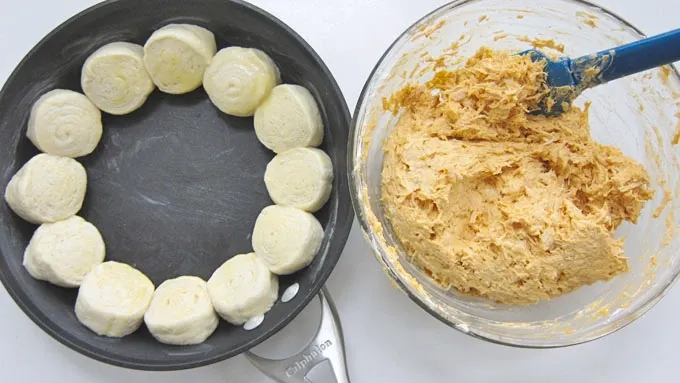 Your party guests will enjoy pulling apart the freshly baked bread from the edge of the skillet and scooping up the spicy dip that’s loaded with chicken, Buffalo sauce and lots of cheese. They’ll be scraping every last bit of cheesy goodness out of the pan! This appetizer is baked and served right in the skillet so you don't have to fuss with a lot of dishes. It comes out of the oven piping hot and is ready to serve.