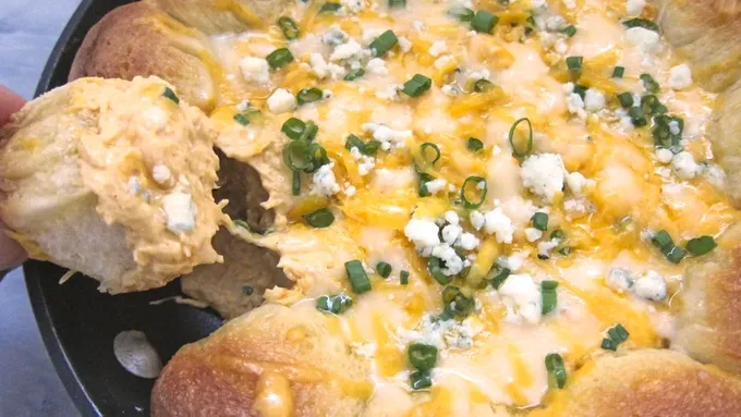 Freshly baked, golden-brown pull-apart bread surrounds bubbly, cheesy Buffalo chicken dip for an easy appetizer no one will be able to resist.