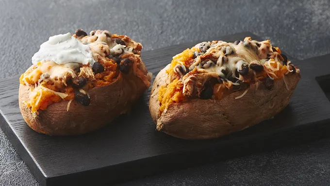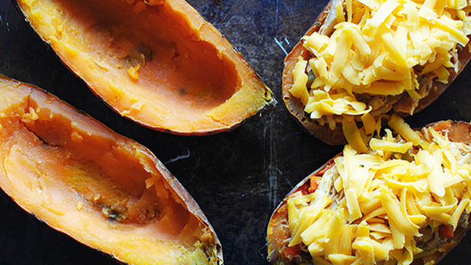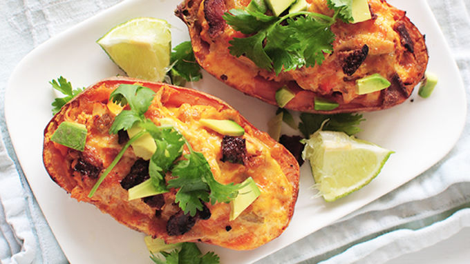 Buffalo Chicken Stuffed Sweet Potato Boats