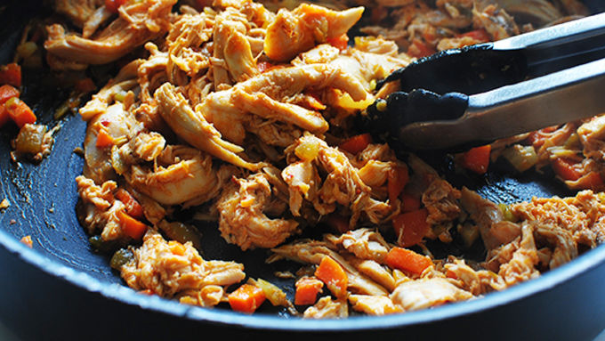 Step5Place the chicken mixture into each half and top with shredded cheese.