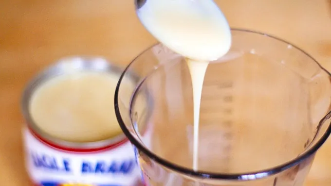 Step2For white layer: Pour water into a small saucepan and sprinkle with unflavored gelatin and allow it to soak in a minute or two. Heat on medium-low, stirring constantly until gelatin dissolves. Stir in rum and sweetened condensed milk.
