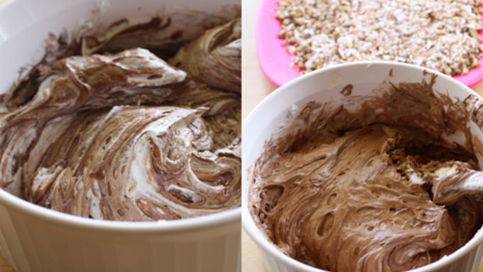 Step3Place thawed whipped topping in a medium bowl and fold in chocolate gently. Mixture will be soft. Place back in the refrigerator to set up for 5-10 minutes if too soft.