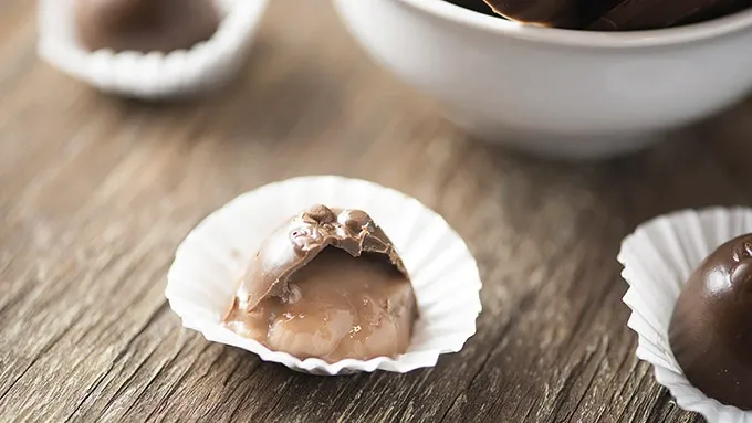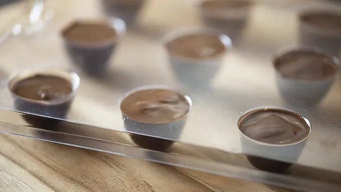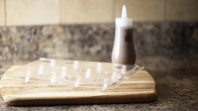 Step5Squirt the melted chocolate into bonbon mold, covering the mold with chocolate. Drop 3/4 teaspoon caramel mixture into the chocolate mold. Squirt more chocolate on top to cover and fill mold. Repeat with remaining molds. Gently drop the mold on the countertop to release air bubbles.