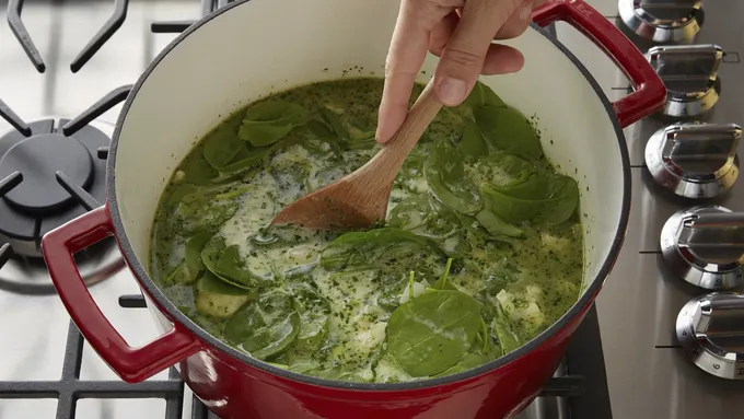 var configuration = {"title":"Cauliflower Pesto Gnocchi Soup with Parmesan Croutons","introduction":"Cold weather calls for comfort food, and it doesn’t get much more comforting than a cozy bowl of creamy, hearty gnocchi soup. That is, until you add a hefty slab of crunchy, cheesy toasted bread to the mix. That\u0027s when you know you’re living a life of luxury.","servingSize":"1 2/3 cups soup and 2 croutons","image":{"small":{"media":"(min-width: 0px)","src":"https://mojo.generalmills.com/api/public/content/POvJjOQCB0KrKzsYHGK6lw_webp_base.webp?v=768a53d3\u0026t=e724eca7b3c24a8aaa6e089ed9e611fd"},"medium":{"media":"(min-width: 500px)","src":"https://mojo.generalmills.com/api/public/content/POvJjOQCB0KrKzsYHGK6lw_webp_base.webp?v=768a53d3\u0026t=191ddcab8d1c415fa10fa00a14351227"},"large":{"media":"(min-width: 767px)","src":"https://mojo.generalmills.com/api/public/content/POvJjOQCB0KrKzsYHGK6lw_webp_base.webp?v=768a53d3\u0026t=191ddcab8d1c415fa10fa00a14351227"},"alt":"Cauliflower Pesto Gnocchi Soup with Parmesan Croutons"},"contributor":{"label":"by:","name":"Tablespoon Kitchens","profileUrl":"/about-us","displayDate":{"label":"Updated","date":"Nov 11, 2019"}},"ingredientGroups":[{"name":"Soup","ingredients":[{"quantity":"3 ","description":"tablespoons butter "},{"quantity":"1 ","description":"cup chopped onions"},{"quantity":"3 ","description":"cloves garlic, finely chopped "},{"quantity":"2 ","description":"tablespoons Gold Medal™ all-purpose flour "},{"quantity":"3/4","description":"teaspoon salt "},{"quantity":"1/4 ","description":"teaspoon pepper "},{"quantity":"1 ","description":"carton (32 oz) Progresso™ chicken broth "},{"quantity":"1 ","description":"small head cauliflower, trimmed and chopped (about 5 cups) "},{"quantity":"1 ","description":"package (16 oz) potato gnocchi "},{"quantity":"1 ","description":"cup heavy whipping cream "},{"quantity":"1/2 ","description":"cup refrigerated basil pesto "},{"quantity":"3 ","description":"cups baby spinach "},{"quantity":"2 ","description":"teaspoons lemon juice "}]},{"name":"Croutons","ingredients":[{"quantity":"12 ","description":"(1/2-inch) slices ciabatta bread "},{"quantity":"1/4 ","description":"cup butter, melted "},{"quantity":"3/4 ","description":"cup shredded Parmesan cheese "}]}],"steps":[{"description":"In 5-quart Dutch oven, heat 3 tablespoons butter over medium heat. Cook onions in butter 4 minutes, stirring occasionally. Add garlic; cook and stir 1 minute. Add flour, salt and pepper; cook and stir 2 minutes. ","stepShotImageUrl":"//mojo.generalmills.com/api/public/content/p_Wedk4iXUmVpmucdDQ8TA_webp_base.webp?v=395162a2\u0026t=3653fe2f5ecd4a47a5a51c97e429947c"},{"description":"Stir in broth and cauliflower; heat to boiling. Reduce heat to low; simmer 15 minutes. ","stepShotImageUrl":"//mojo.generalmills.com/api/public/content/KixXij0ZtU2nSRuZxikC9Q_webp_base.webp?v=415c1a44\u0026t=3653fe2f5ecd4a47a5a51c97e429947c"},{"description":"Increase heat to medium-high. Add gnocchi; cook 2 minutes. Stir in whipping cream; heat to simmering. Add pesto and spinach; cook 1 to 2 minutes or until spinach is wilted. Stir in lemon juice. ","stepShotImageUrl":"//mojo.generalmills.com/api/public/content/_rE5O8fvmE-Vr3eFPb7oOw_webp_base.webp?v=8ac33004\u0026t=3653fe2f5ecd4a47a5a51c97e429947c"},{"description":"Meanwhile, set oven control to Broil. Arrange ciabatta slices on ungreased large cookie sheet; brush both sides with melted butter. Broil with tops 6 inches from heat 1 to 2 minutes on each side or until lightly toasted. Sprinkle rounded tablespoonful of Parmesan cheese on top of each slice. Broil 1 to 2 minutes or until cheese is lightly browned. Serve with soup. ","stepShotImageUrl":"//mojo.generalmills.com/api/public/content/AcHpeUvCxkarFtd100Fy9A_webp_base.webp?v=b1a0633f\u0026t=3653fe2f5ecd4a47a5a51c97e429947c"}],"tips":[{"title":"","description":"We recommend refrigerated pesto over the kind you find in a jar, as the refrigerated variety will have a fresher flavor.","category":"Recipe/Ingredient Facts","tipShots":[]},{"title":"","description":"Can’t find the gnocchi? Shelf-stable, unrefrigerated gnocchi is usually found in the pasta section of the grocery store.","category":"Recipe/Ingredient Facts","tipShots":[]},{"title":"","description":"If you’re short on time, you can serve this soup with store-bought salad croutons instead.","category":"Time Saving","tipShots":[]},{"title":"","description":"Kitchen Tested - 9/2019","category":"Kitchen Tested","tipShots":[]}],"kitchenTips":[{"title":"","description":"We recommend refrigerated pesto over the kind you find in a jar, as the refrigerated variety will have a fresher flavor.","category":"Recipe/Ingredient Facts","tipShots":[]},{"title":"","description":"Can’t find the gnocchi? Shelf-stable, unrefrigerated gnocchi is usually found in the pasta section of the grocery store.","category":"Recipe/Ingredient Facts","tipShots":[]},{"title":"","description":"If you’re short on time, you can serve this soup with store-bought salad croutons instead.","category":"Time Saving","tipShots":[]}],"additionalContent":[],"faq":[],"tipCategories":[{"categoryName":"Kitchen Tested","heading":"More About This Recipe","cssClass":"recipePartStory","expandOnInit":false,"expandText":"More +","collapseText":"Less -","expandEventName":"","collapseEventName":"","image":"","tips":[{"title":"","description":"Kitchen Tested - 9/2019","category":"Kitchen Tested","tipShots":[]}],"isExpandable":false}],"nutritionInfo":{"configuration":{"showAsTable":false,"noNutritionInformationAvailableMessage":"No nutrition information available for this recipe","poweredByText":"\u003cp\u003eNutrition information for this recipe is estimated using a leading nutrition calculation application, but is an estimate only. Actual nutrition values will vary based on the exact ingredients or brands you may use.\u003c/p\u003e\n\u003ca href=\u0022http://developer.edamam.com\u0022\u003ePowered By \u003cimg src=\u0022-/media/A