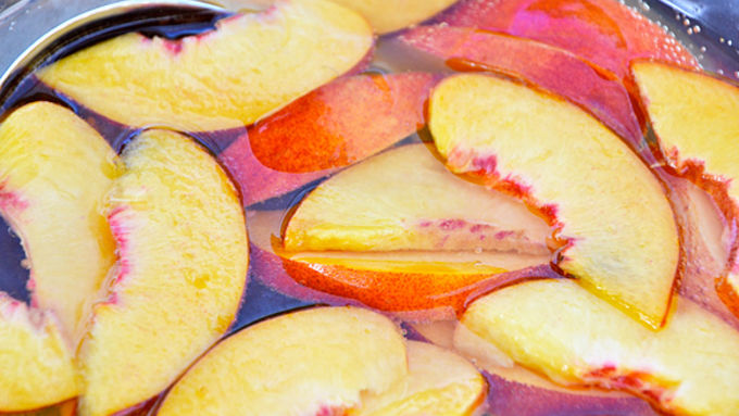 Step1Finely dice the peaches and nectarines and set aside. They will be added to the jello shots later.