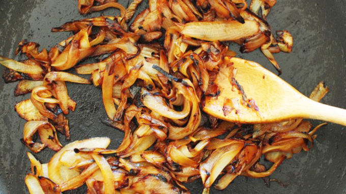 Step1Heat the oil in a large skillet over medium. Add the sliced onions and sauté until nice and caramelized, about 45 minutes. Season with a small pinch of salt. Transfer to a cutting board and chop.![]()