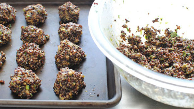 Step3Carefully make little balls with your hands (it will be messy, but really, it will work!) and place on a baking sheet. Slide the sheet into an oven preheated to 350 and bake for 20 minutes.