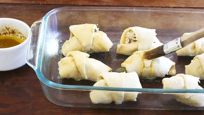 Step4Place the stuffed crescent rolls in a baking dish and generously baste with the sauce.