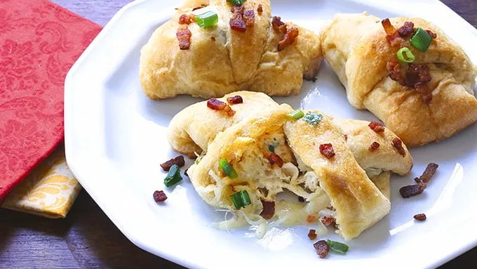 Step5Bake for 11-14 minutes or until the crescent rolls are golden brown. Halfway through baking, sprinkle with more bacon bits and some sliced green onions if desired. Serve immediately.