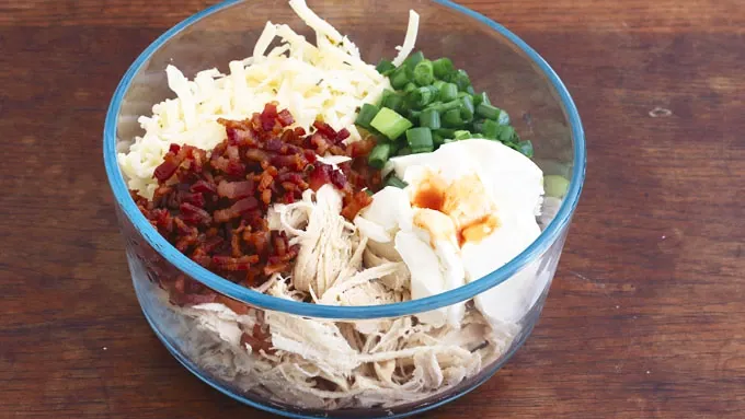 - 1 rotisserie chicken, shredded (you'll need two cups of shredded chicken)