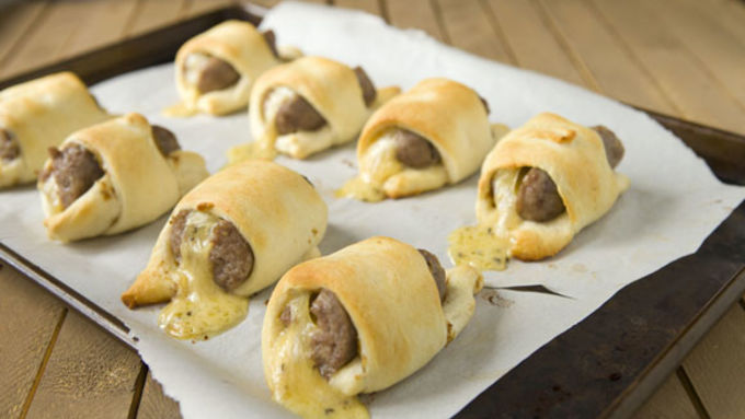 - Brats wrapped inside their own golden-brown crescent roll for game day or any day! When it comes to appetizers that pay dividends, these are about as good as it gets. They are cheesy and meaty and the crescent rolls are a perfect soft and flakey wrapper. Plus these Cheesy Crescent Bratdogs are super simple to make, thanks to Immaculate Baking Crescent Rolls! There are many ways to cook a bratwurst but my personal favorite is to simmer them in beer. For this recipe, any beer will work, honestly, so feel free to use a light lager. (Not into beer? Just boil them in water instead.) The crescent rolls should be golden brown -- and, by the way, it’s perfectly fine if some of the cheese melts out of them. Eat these as soon as possible while the crescent rolls are still nice and warm. One crescent roll is a pretty hearty appetizer!
