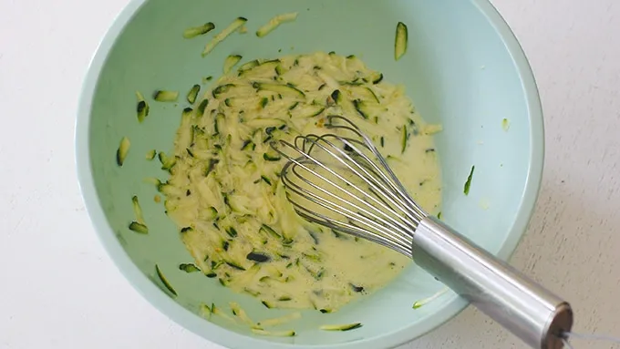 Step3In another bowl, mix together the zucchini, garlic, egg, and milk.