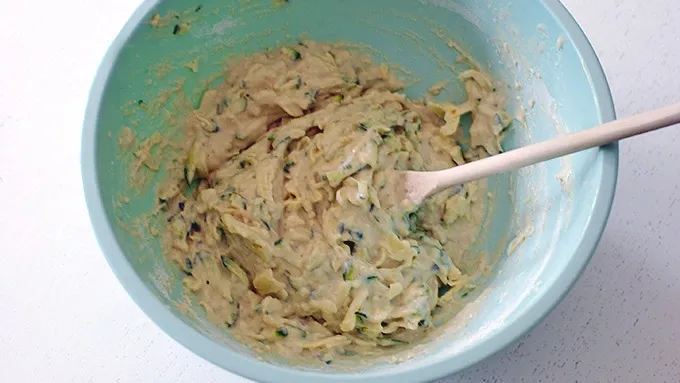Step4Add about 1/2 cup of the flour mixture to the zucchini bowl, stirring to fully incorporate. Once all the flour is mixed in, add the cheese and remaining pinch of salt, then stir to combine.