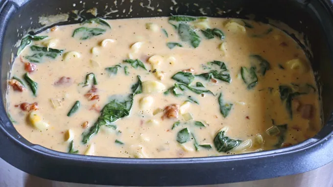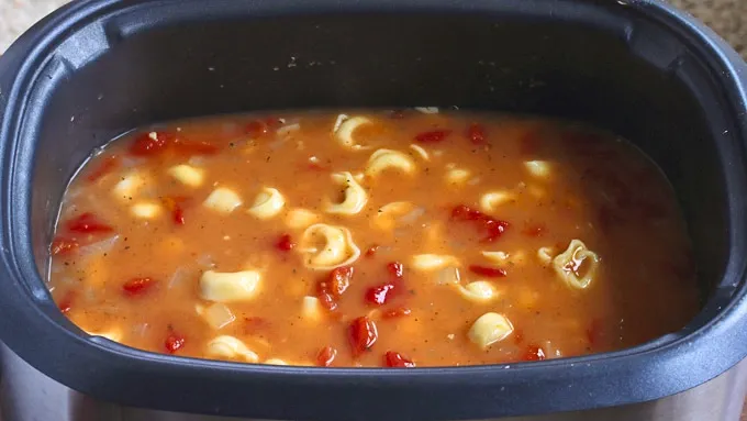 Step3Add the frozen tortellini and cook on High for another 15-20 minutes or until done.