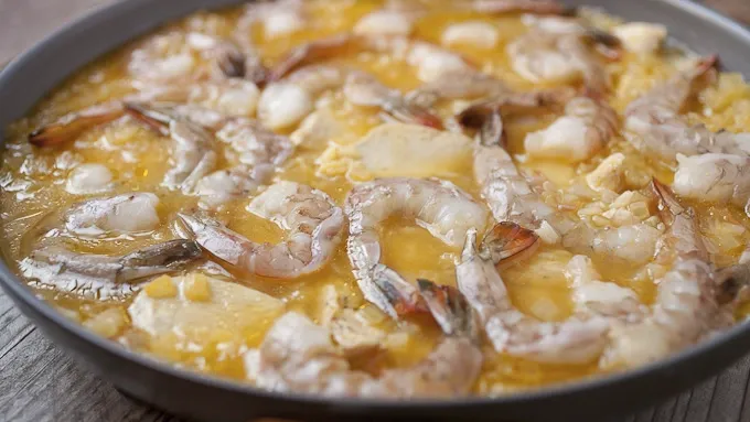 Step5After simmering for 15 minutes, add cleaned shrimp to skillet. Cover and cook for another 5 minutes.