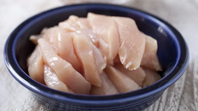 Step1Slice chicken into thin 2-inch strips. Peel shrimp, leaving the tail on, and clean shrimp by running a paring knife down the back and rinsing out the shrimp vein with cold water.