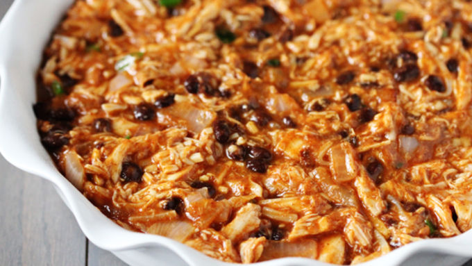 Step2Transfer onion and jalapeño mixture to a large mixing bowl. Add enchilada sauce, salsa, chicken, black beans, and 1 cup of Mexican cheese. Stir all ingredients until evenly mixed.