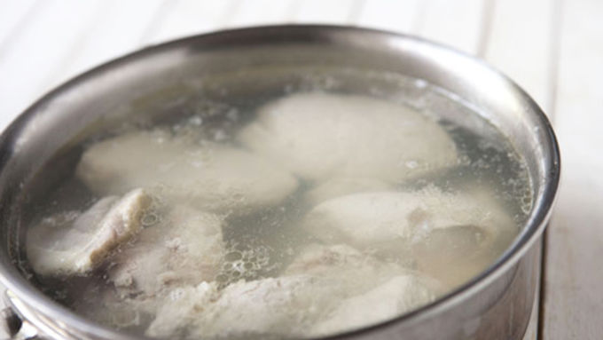 Step1If chicken isn't already cooked, poach is in simmering water for about 15 minutes until chicken is cooked through. I like to use a mix of white and dark meat for my taquitos.