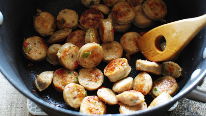 Step1Heat the oil in a large pot over medium-high. Add the chicken sausage and cook until browned on both sides, about 7 minutes.
