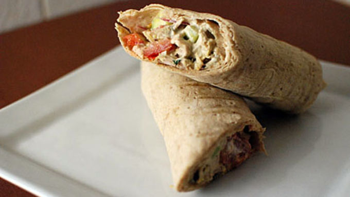 A middle eastern wrap that is simmilar to a greek gyro, but stuffed with chicken and topped with a sesame-yogurt sauce.