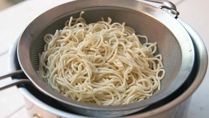 Step2Dunk noodles in boiling water for 3-4 minutes until they’re rehydrated and soft. Then drain the noodles and toss with 1 teaspoon sesame oil so they don't stick together.