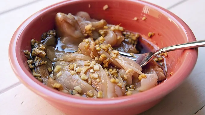 Step1Slice chicken thin and toss with garlic, ginger, soy sauce, and sesame oil. Set aside and let marinate for a few minutes.