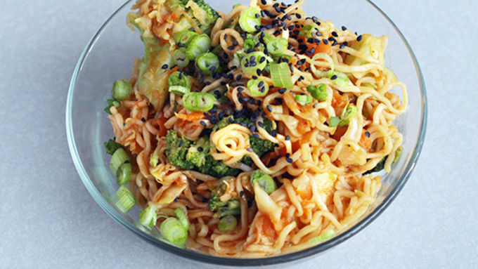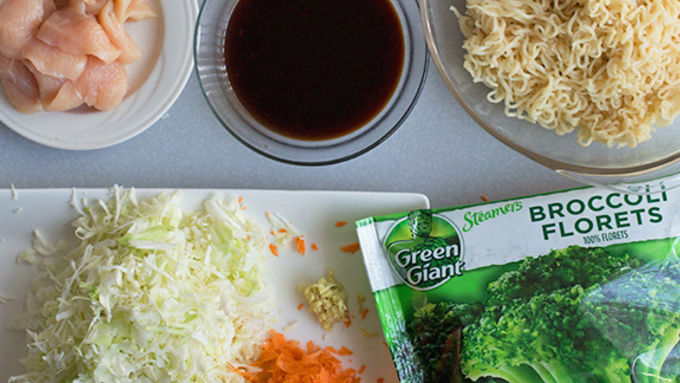 - Short on cash after Christmas and looking to be a bit more frugal with food? Enter Yakisoba. There’s everything you could want in this dish, and it’s inexpensive enough that you can have it approximately every single day!For the ingredients: This dish comes together fast, and it’s important that’s nothing is overcooked so prep for everything is done ahead of time. That includes cooking the noodles. So almost everything here is prepped with the exception of the Green Giant broccoli florets – they steam in the microwave real quick. We’re adding in the veggie power of fresh cabbage and carrots. There’s some chicken, grated ginger, a sauce made of a few different things, and ramen noodles that we’ve cooked, shocked in cold water, and tossed with some oil. Once the Yakisoba is heated through, serve it up! Some sliced green onions add a little more flavor and black sesame seeds add a little crunch and flair. And food flair is a thing.