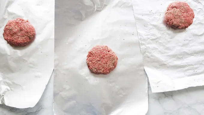 Step2Mix beef with salt and pepper. Shape into four patties, about 1/2-inch thick. Place 1 patty in the center of each foil sheet.