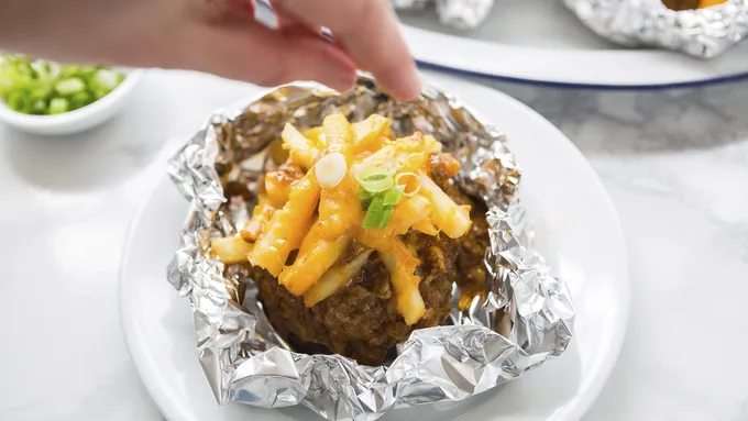 - When it comes to summer grilling, it’s always fun to surprise your backyard BBQ guests. Instead of serving up same-old chicken, grab some foil and prepare these simple Chili Cheeseburger and Fries Foil Packs. A hearty, hand-pressed burger is topped with no-bean chili, frozen fries and cheese, then baked or grilled until ready to enjoy. A welcome twist to any weeknight dinner, summer potluck or casual backyard party. Prep a whole batch of these burgers and serve up the bests eats in town.