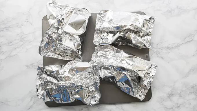 Step1Cut four 18x12-inch sheets of nonstick aluminum foil.