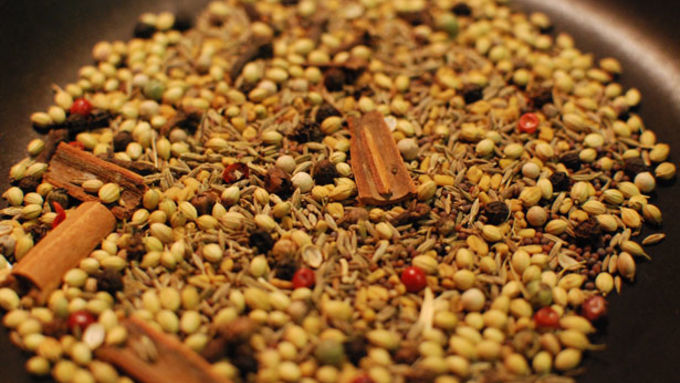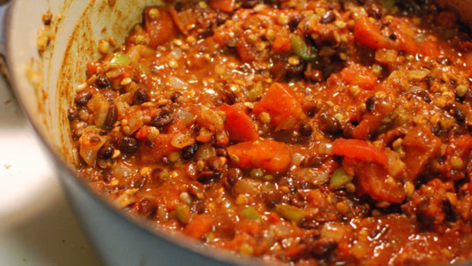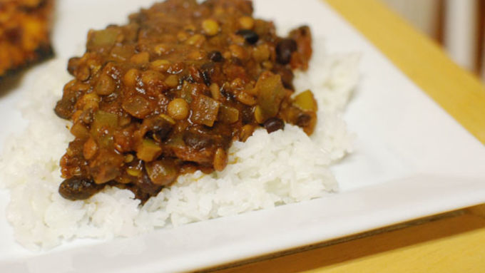 - When I cook "fusion" dishes, I don't try and force things to go together that don't belong together. I think that when chefs start doing that, people start to hate the whole idea of fusion. But fusion can be a beautiful thing, and many dishes from one culture are very similar to dishes from another. Culinary cousins, if you will. Enter the Indian dish Dhal. Dhal is a veggie and lentil side that is spooned over rice. Last time I ate Dhal, I thought to myself, This sort of reminds me of chili! So I cooked a Dhal recipe, slightly altering some ingredients and spices to make it taste like chili, and the results were fantastic! First you need to make a garam masala spice blend. The words garam masala literally translate to "hot mixture," but the hot doesn't necessarily mean burn your mouth, it means spice. All garam masalas are different -- today I made a cumin-coriander-mustard heavy mix, and used less clove and fenugreek than normal. This would help the dhal taste more like chili. Serve with Basmati Rice and enjoy!